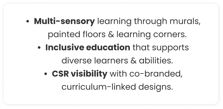 Transforming school walls, floors, and spaces into interactive, curriculum-linked learning resources.